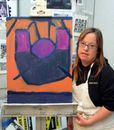Lily Hixon was born with Down Syndrome. She has been painting and doing ceramic works since she was a child. She is a prolific artist with a keen sense of color. Her interest in the geometry of space and shapes is evident in her paintings.